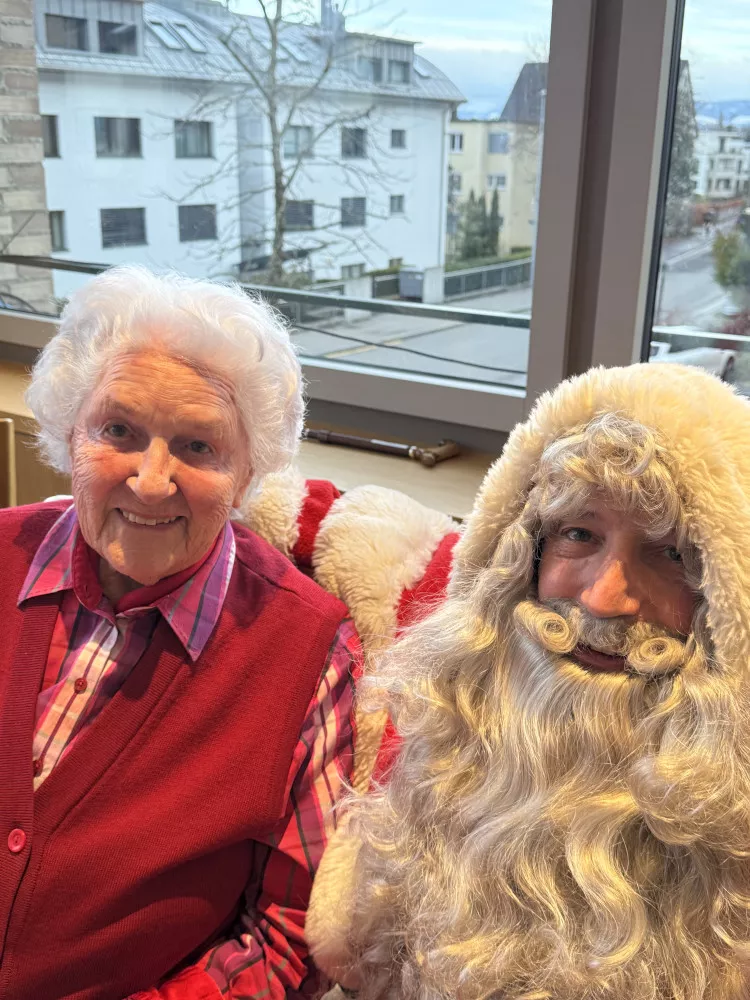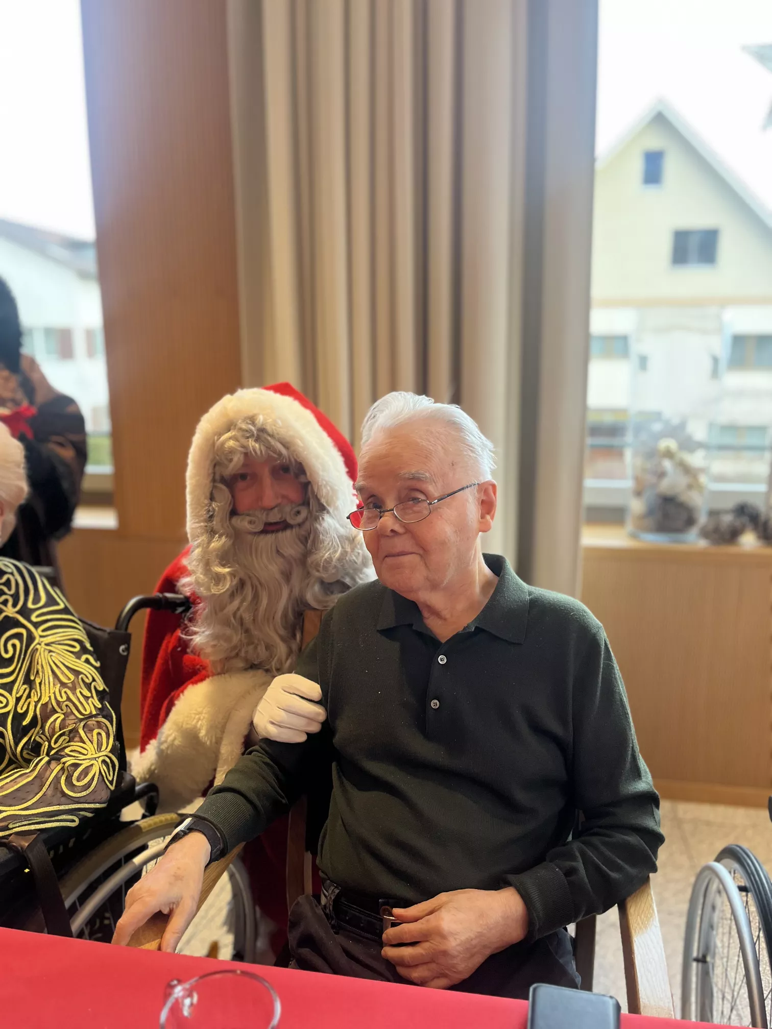 Am 06.12.2025 besuchte der Samichlaus das Abegg Huus und sorgte für strahlende Gesichter bei unseren Bewohnenden. Er verteilte Samichlaussäcke gefüllt mit Nüssli und Leckereien, die für grosse Freude sorgten. Die Bewohnenden waren begeistert und genossen die festliche Stimmung im Abegg Huus.